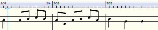 Les deux extraits de partitions se jouent de la même manière, c'est le premier extrait sonore ; pour le suivant, j'ai imbriqué l'extrait dans une air en 4/4, pour démontrer qu'il n'est finalement pas pertinent de changer la métrique des mesures pour un passage aussi court.