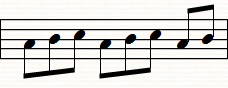 Voici trois exemples de regrouper les notes d'une mesure. Dans la pratique, on accentue légèrement la première croche du groupe de croches, dans le mp3 que voici! J'ai accentué plus qu'il n'en faut pour que ça s'entende bien.