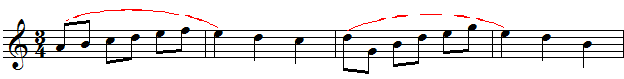 Un bout de mélodie en 3/4, avec un exemple en mp3 :