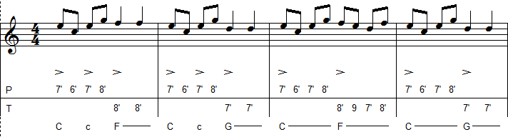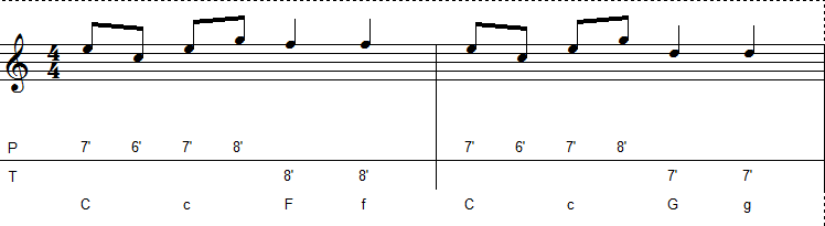 Voici un exemple de rythmique, je l'ai élaborée en tenant compte des pas "posés" : un pas posé = une basse posée (plus longue).