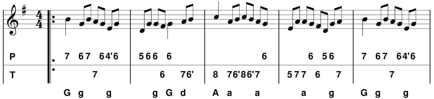 - C : les notes qui ne changent pas d'une mesure à l'autre sont mises en évidence.