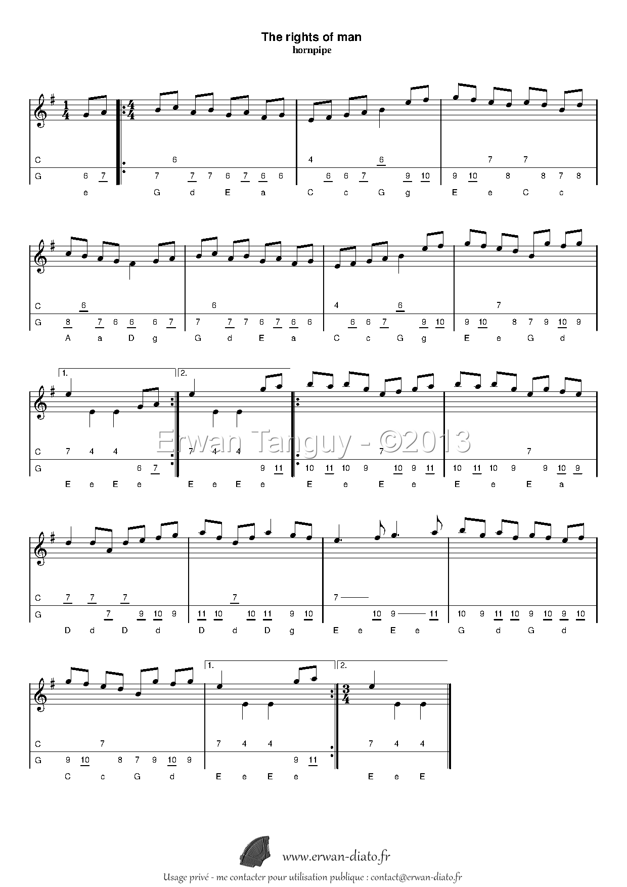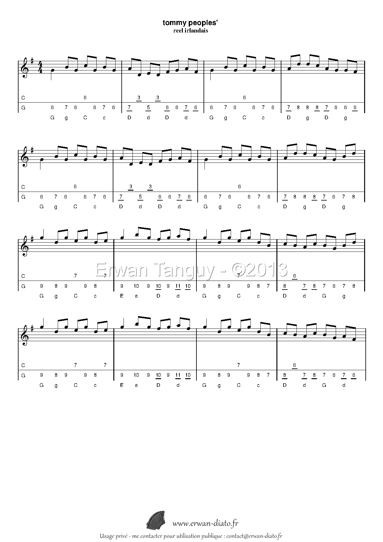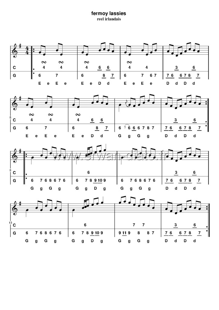 Voici la tablature complète avec l'accompagnement modifié : Father Kelly's reel